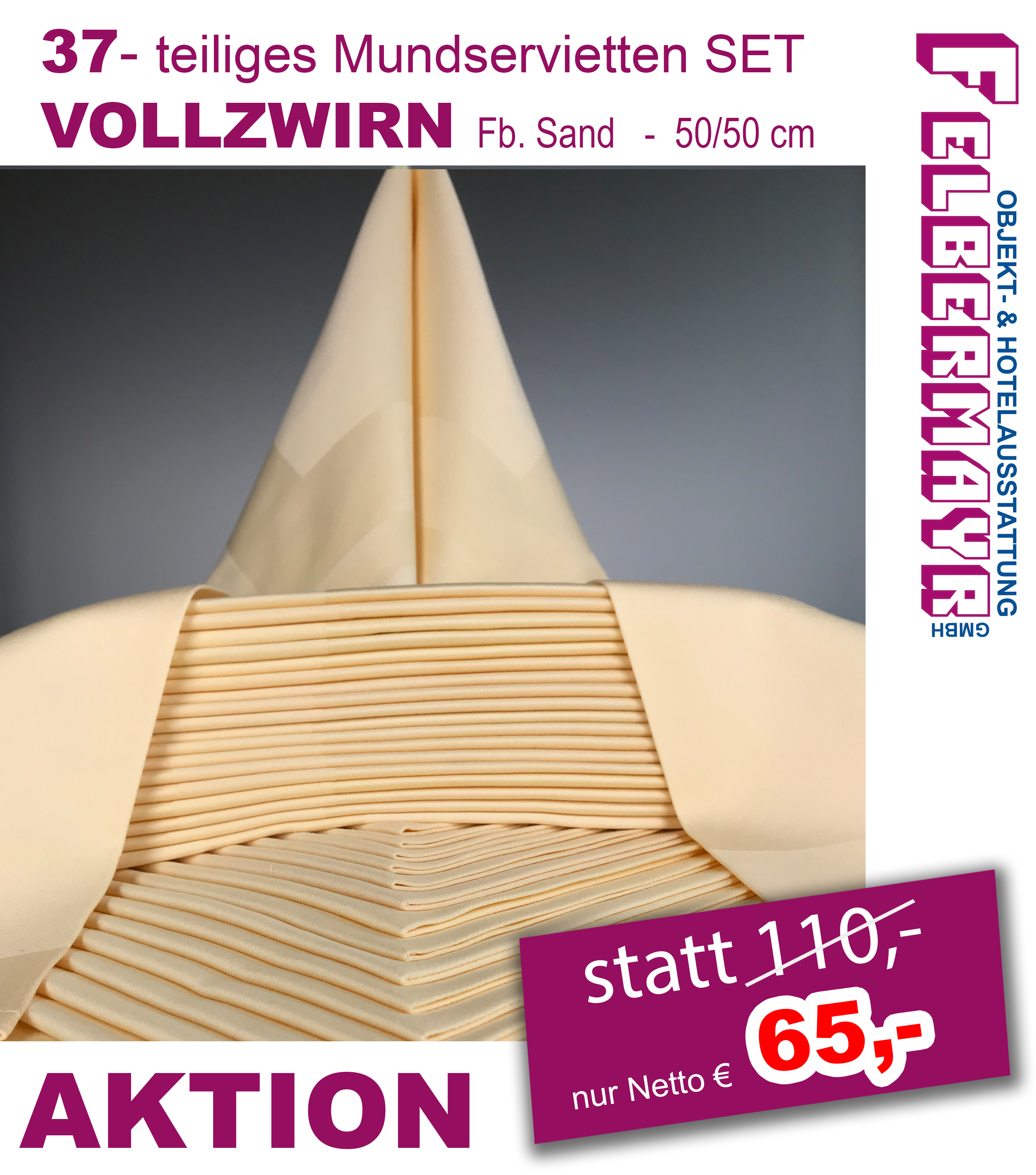 Startseite » Lager Abverkauf » Lagerabverkauf Servietten, Läufer » 37- teiliges Mundservietten Set VOLLZWIRN Sand